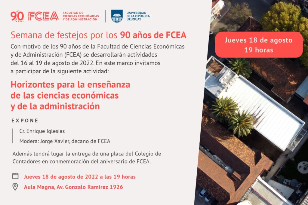 Con motivo de los 90 años de la Facultad de Ciencias Económicas y de Administración (FCEA) se desarrollarán actividades del 16 al 19 de agosto de 2022. En este marco invitamos a participar de la siguiente actividad: